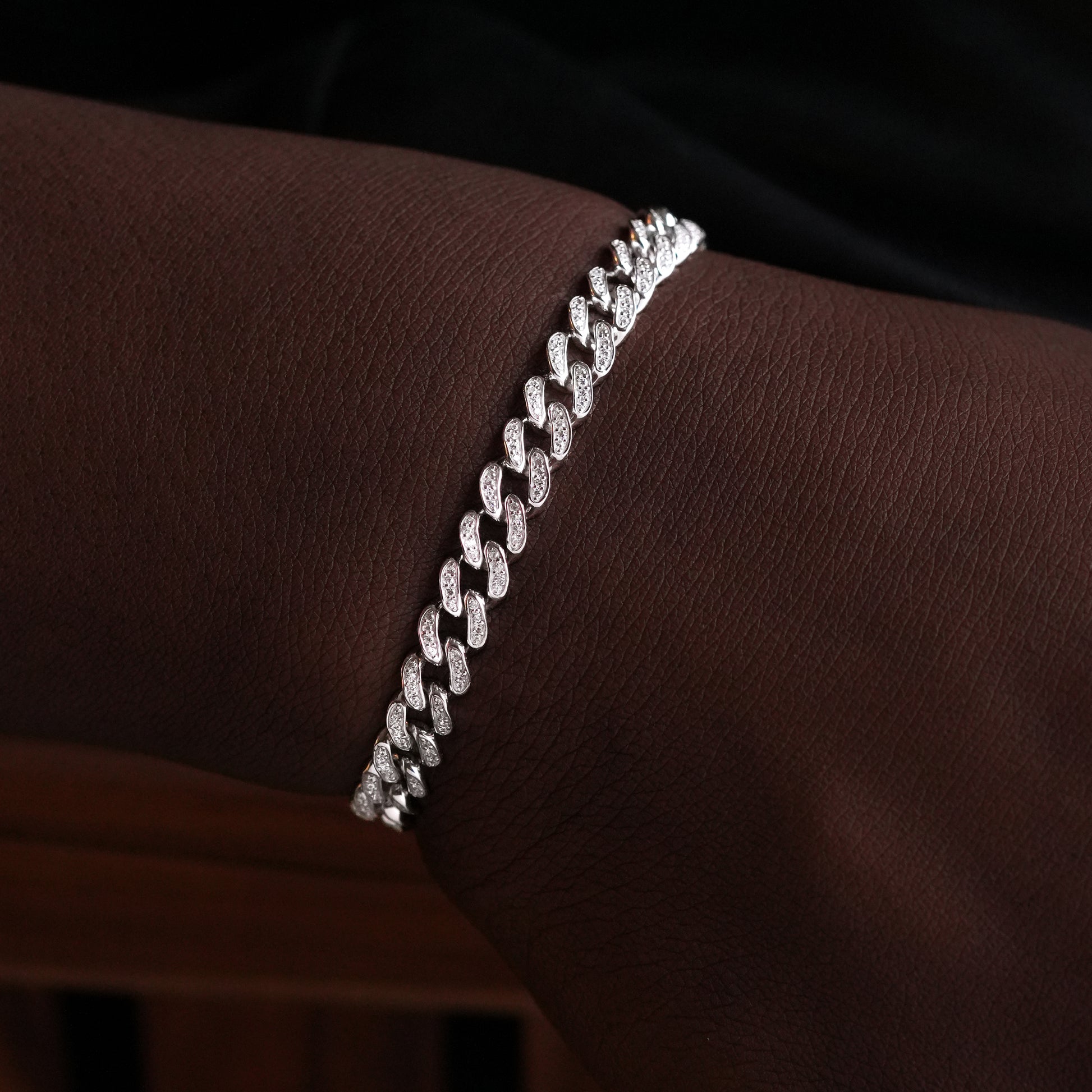 Make a statement with this dazzling 7mm Cuban Bracelet, designed in brass and coated with rhodium plating for a high-shine, tarnish-resistant finish. The bracelet features a bold Cuban link style, adorned with simulated diamonds that add a touch of glamour to its classic design.