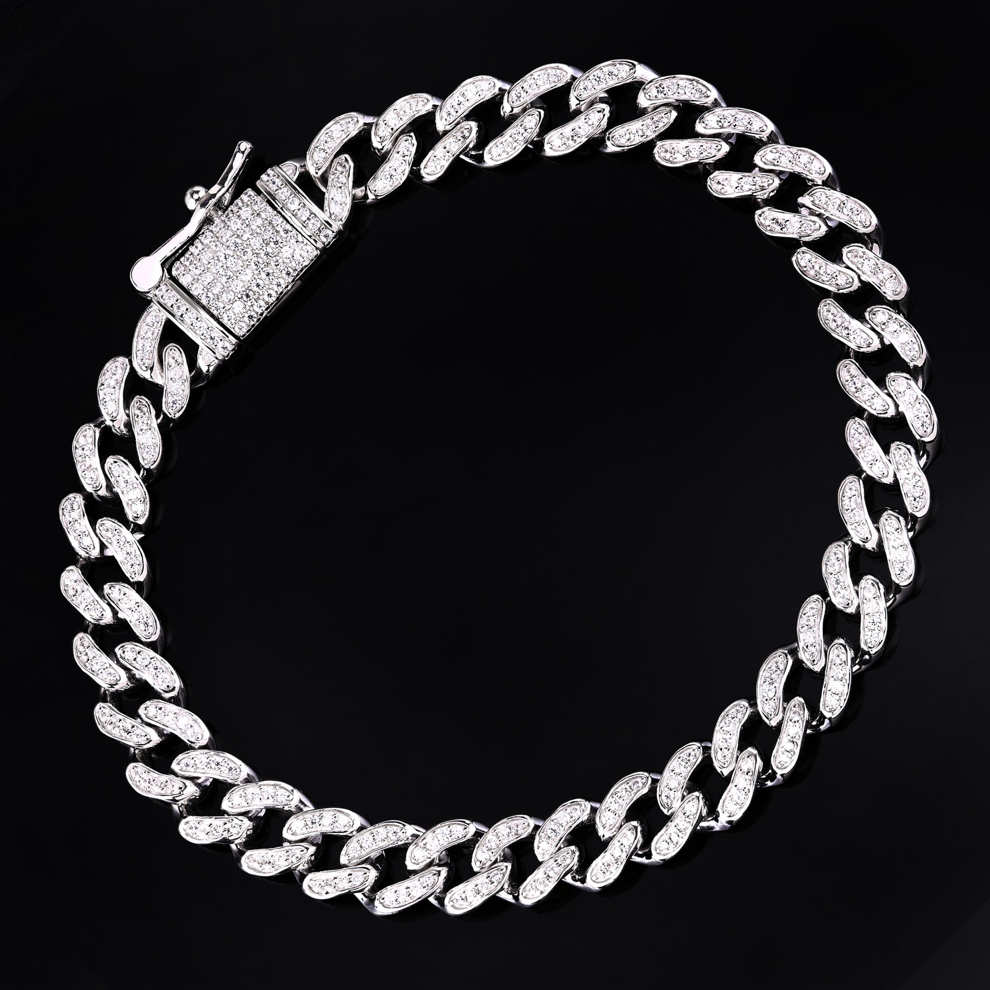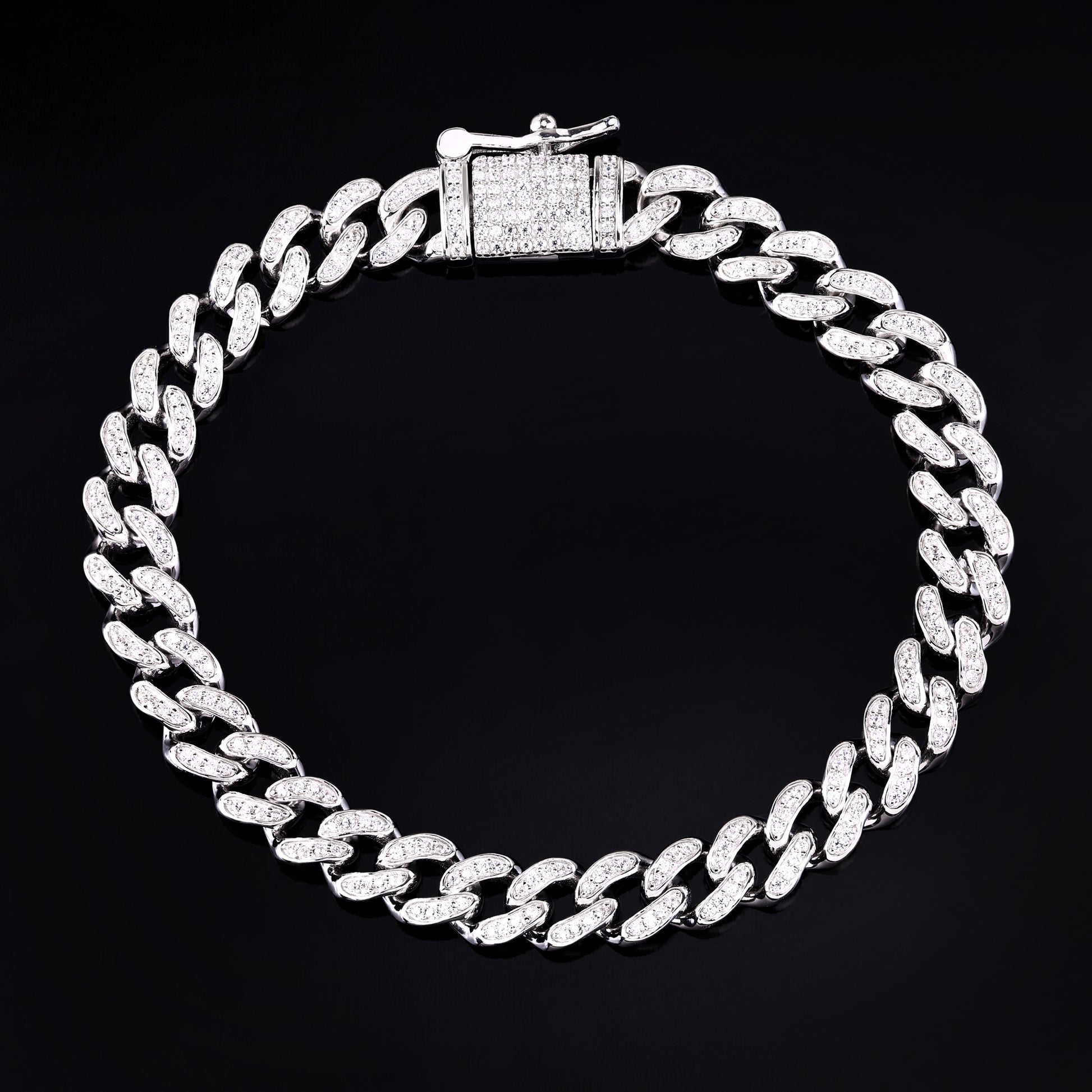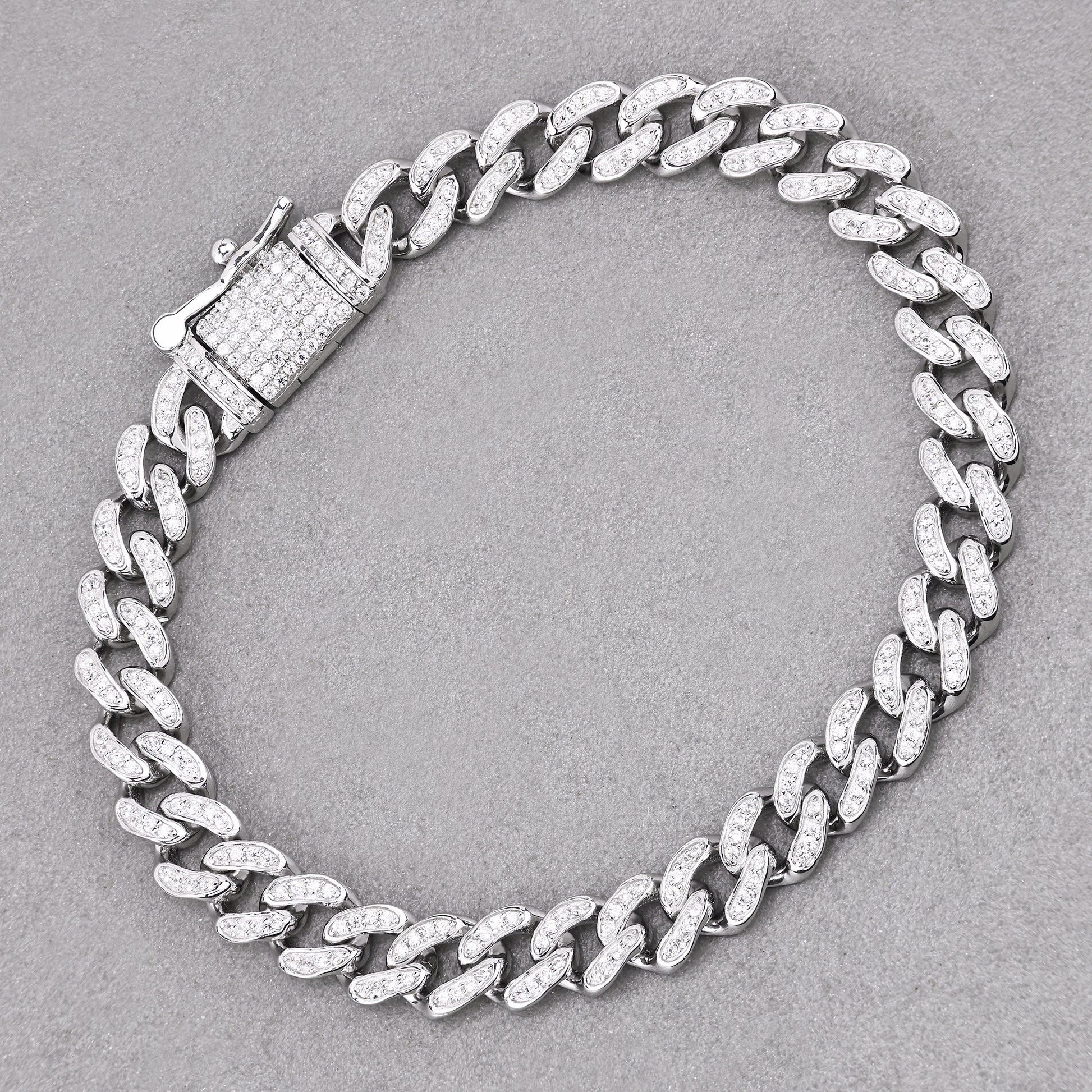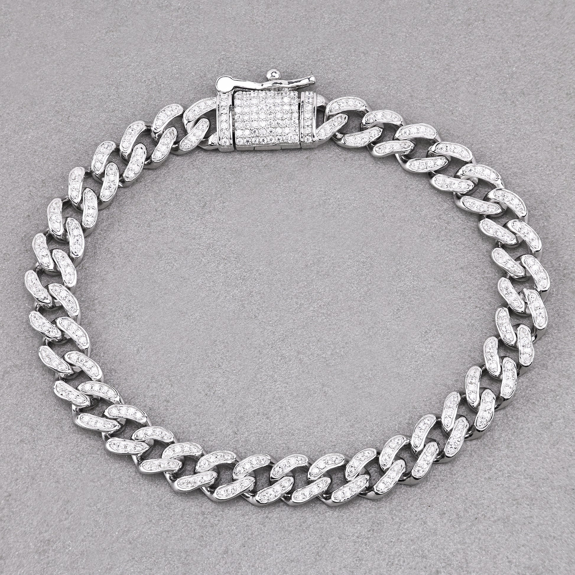 Make a statement with this dazzling 7mm Cuban Bracelet, designed in brass and coated with rhodium plating for a high-shine, tarnish-resistant finish. The bracelet features a bold Cuban link style, adorned with VVS diamond simulant rounds that add a touch of glamour to its classic design. Whether you're dressing up for a special occasion or adding a touch of luxury to your everyday look, this bracelet is versatile and effortlessly stylish. The 7mm width offers the perfect balance of sophistication and edge, making this a standout piece in any jewelry collection.