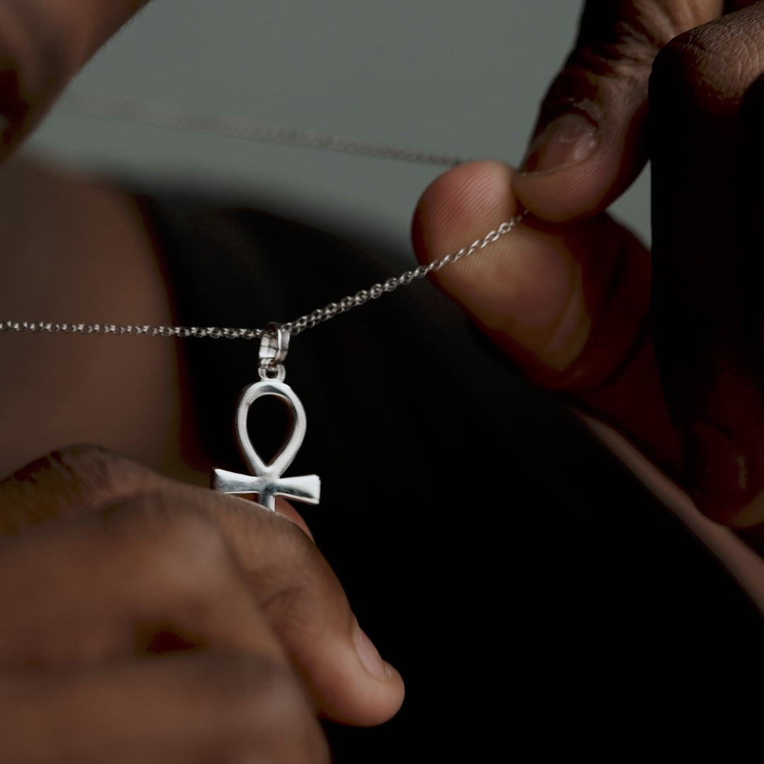Embrace the power of ancient Egypt with this stunning Ankh Pendant, crafted from .925 sterling silver and coated in rhodium plating for a sleek and sophisticated look. The ankh, a symbol of eternal life, is a timeless motif that adds both style and meaning to any jewelry collection.