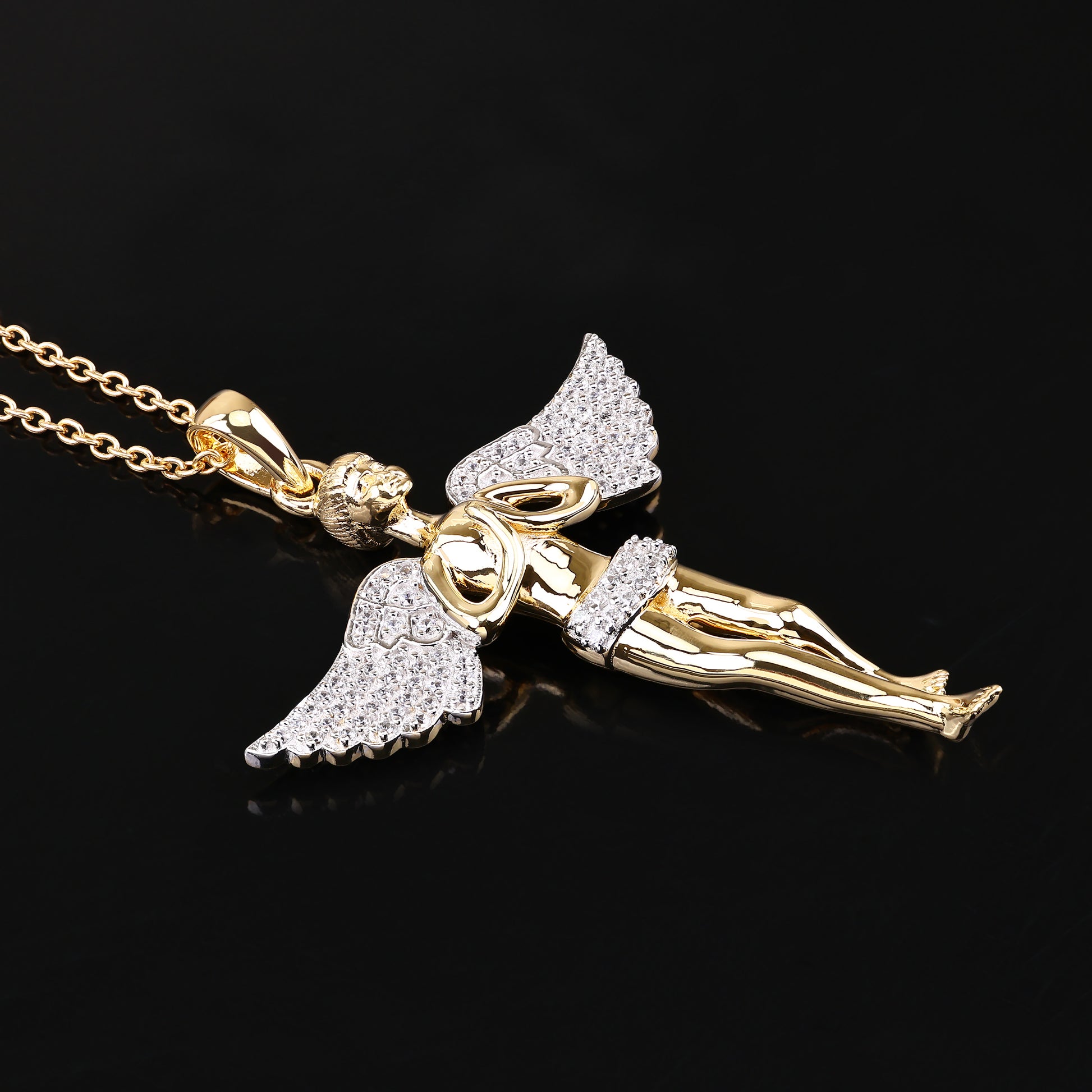 The delicately sculpted wings shimmer with VVS diamond simulant rounds, adding an ethereal brilliance to the piece. Designed for those who seek spiritual connection and inner strength, this pendant makes a meaningful statement.