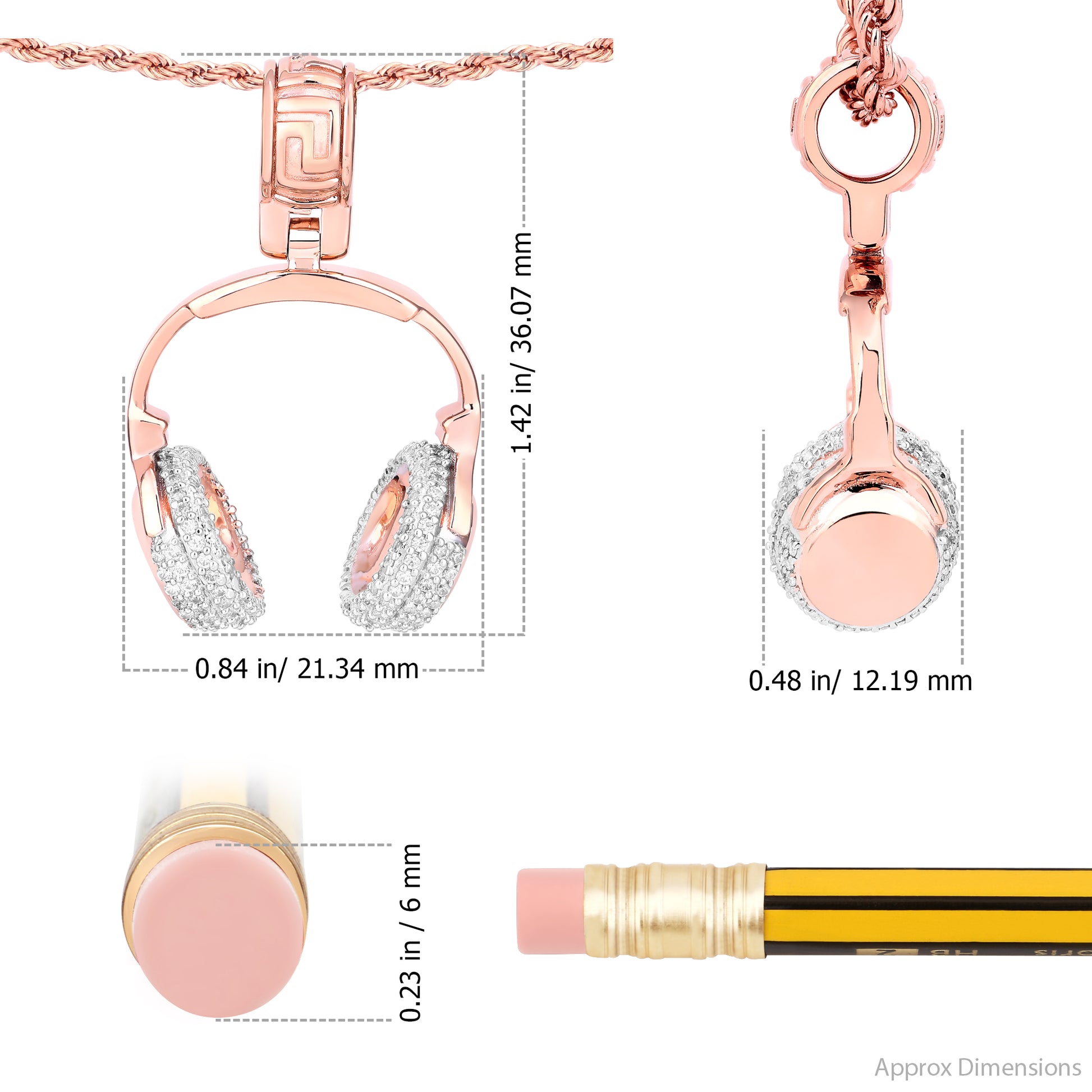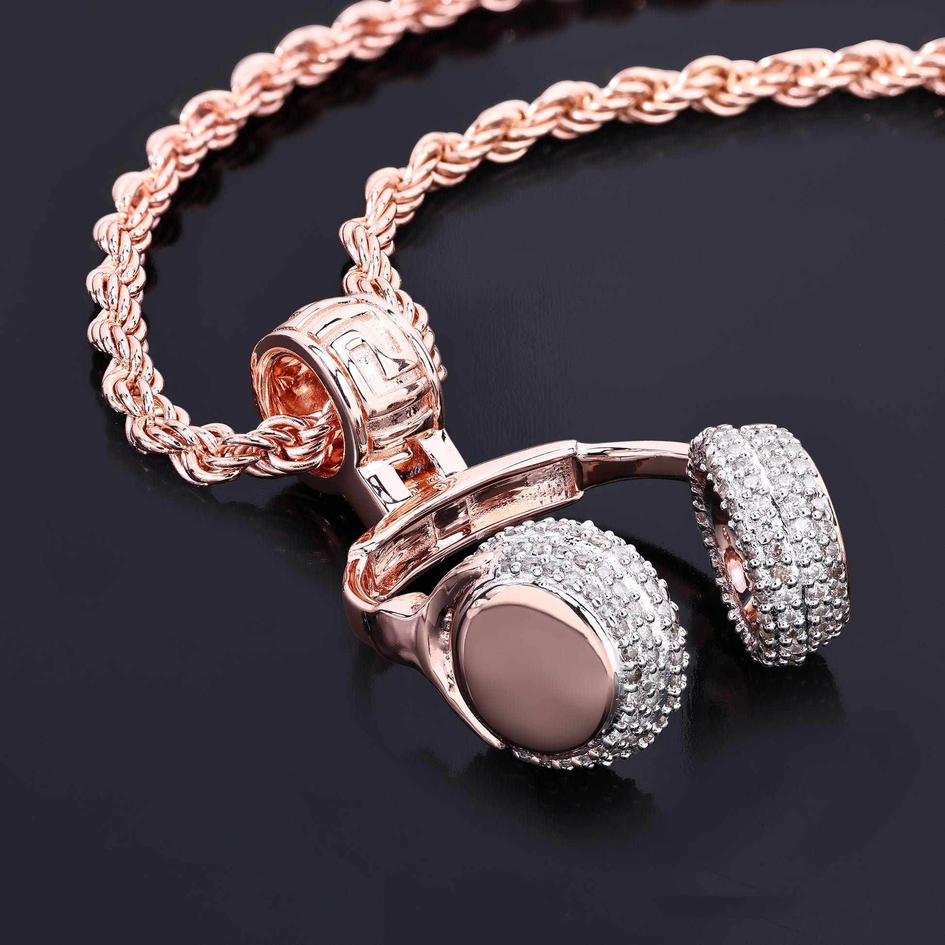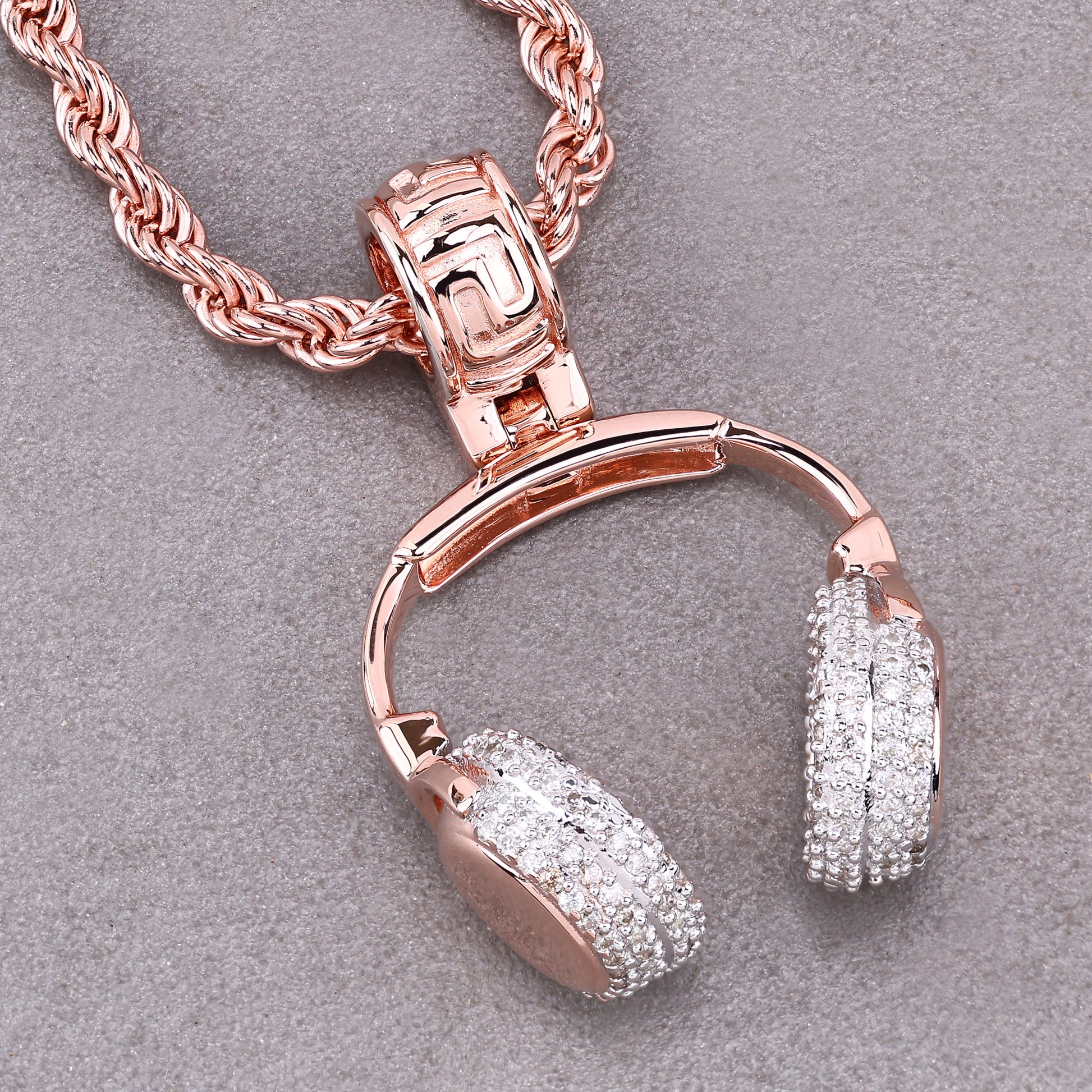Turn up the volume on your style with this DJ Music Headphone Pendant, a must-have for music lovers and trendsetters. Crafted in 14K rose gold-plated silver, this intricately designed piece captures the essence of passion for sound with its realistic headphone shape.