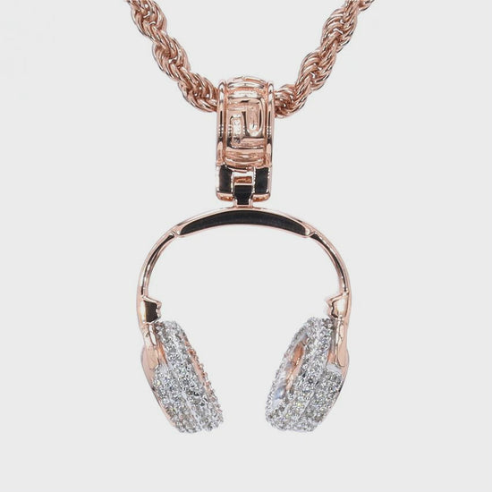 The ear cups are encrusted with VVS diamond simulant rounds, adding a dazzling brilliance that commands attention. Whether you're a DJ, producer, or simply someone who lives for the beat, this pendant is the perfect way to showcase your love for music.