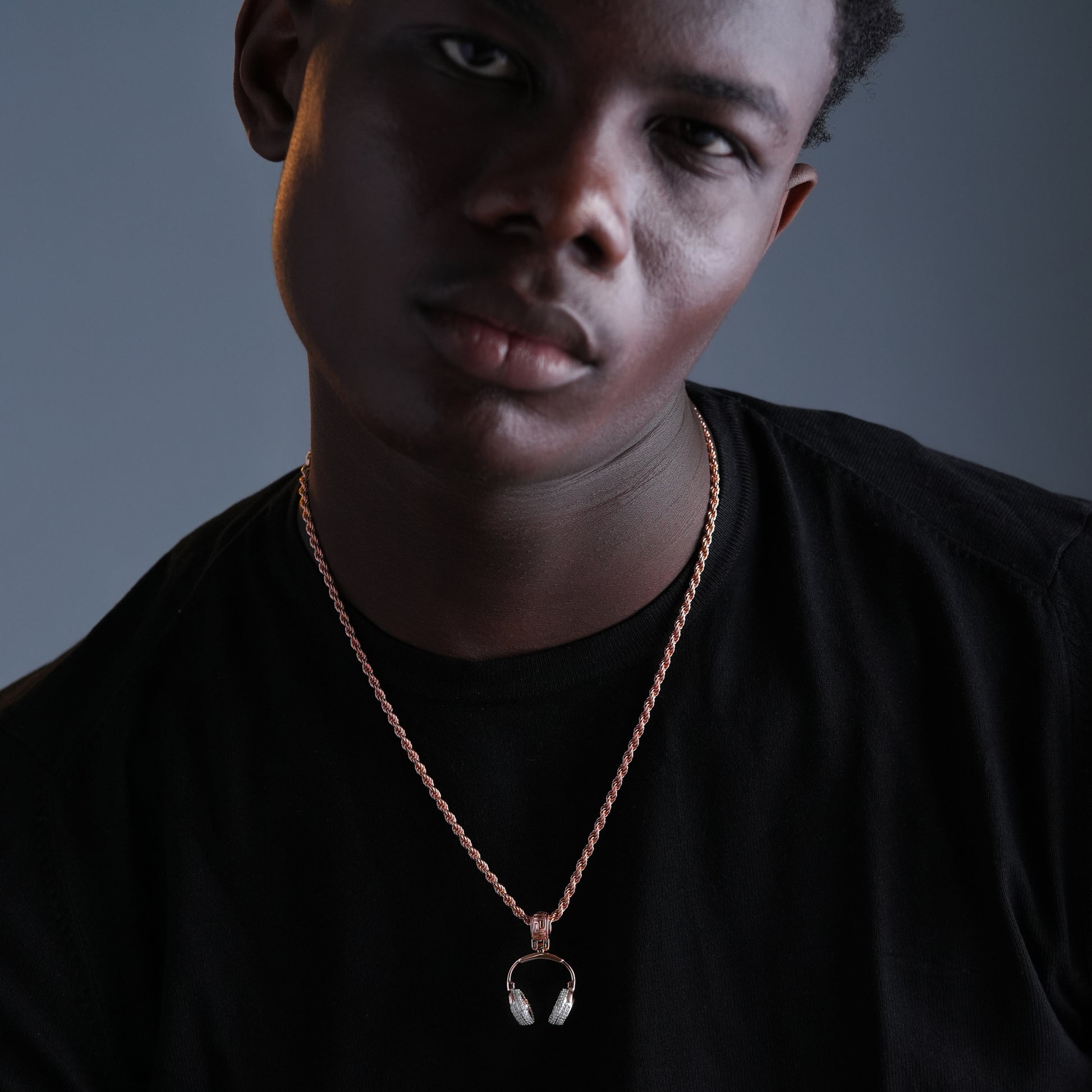 The ear cups are encrusted with simulated diamonds, adding a dazzling brilliance that commands attention. Whether you're a DJ, producer, or simply someone who lives for the beat, this pendant is the perfect way to showcase your love for music.