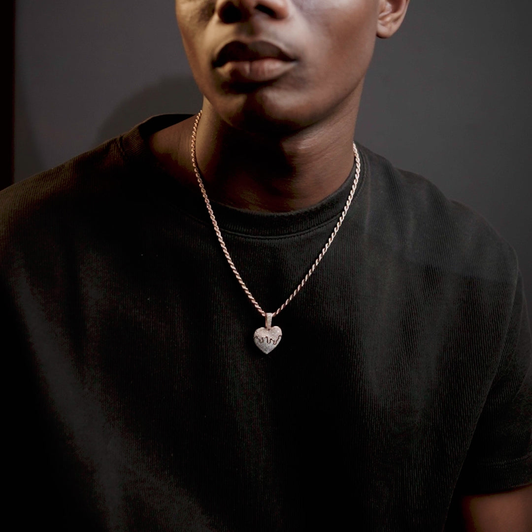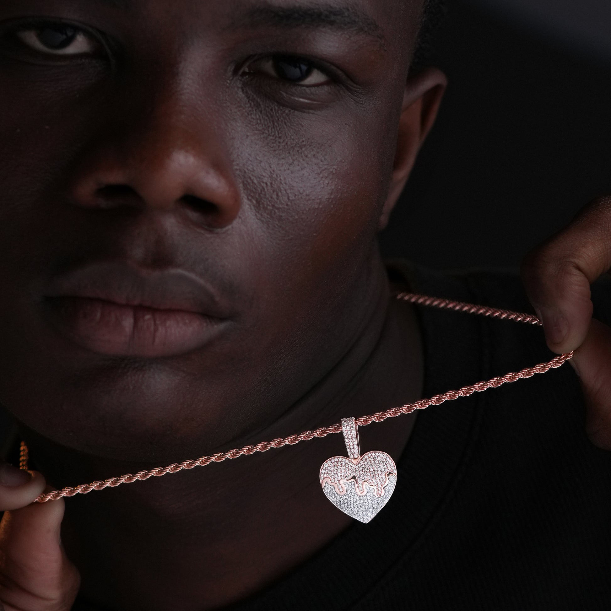 Show off your love with a stylish edge in this Drippy Heart Pendant. Made from .925 sterling silver with rose gold plating, this pendant features a heart design with a creative dripping effect, giving it a unique, contemporary look.