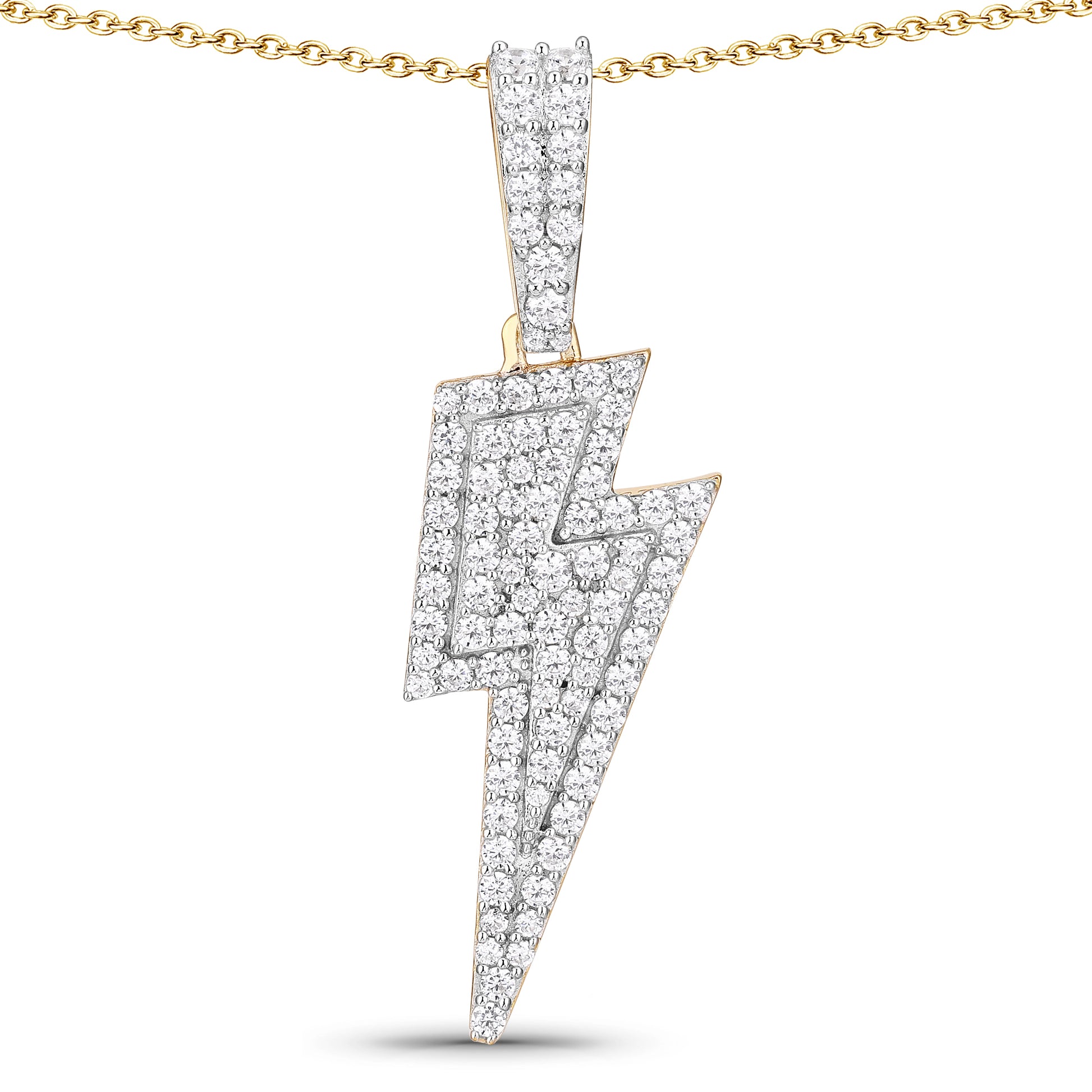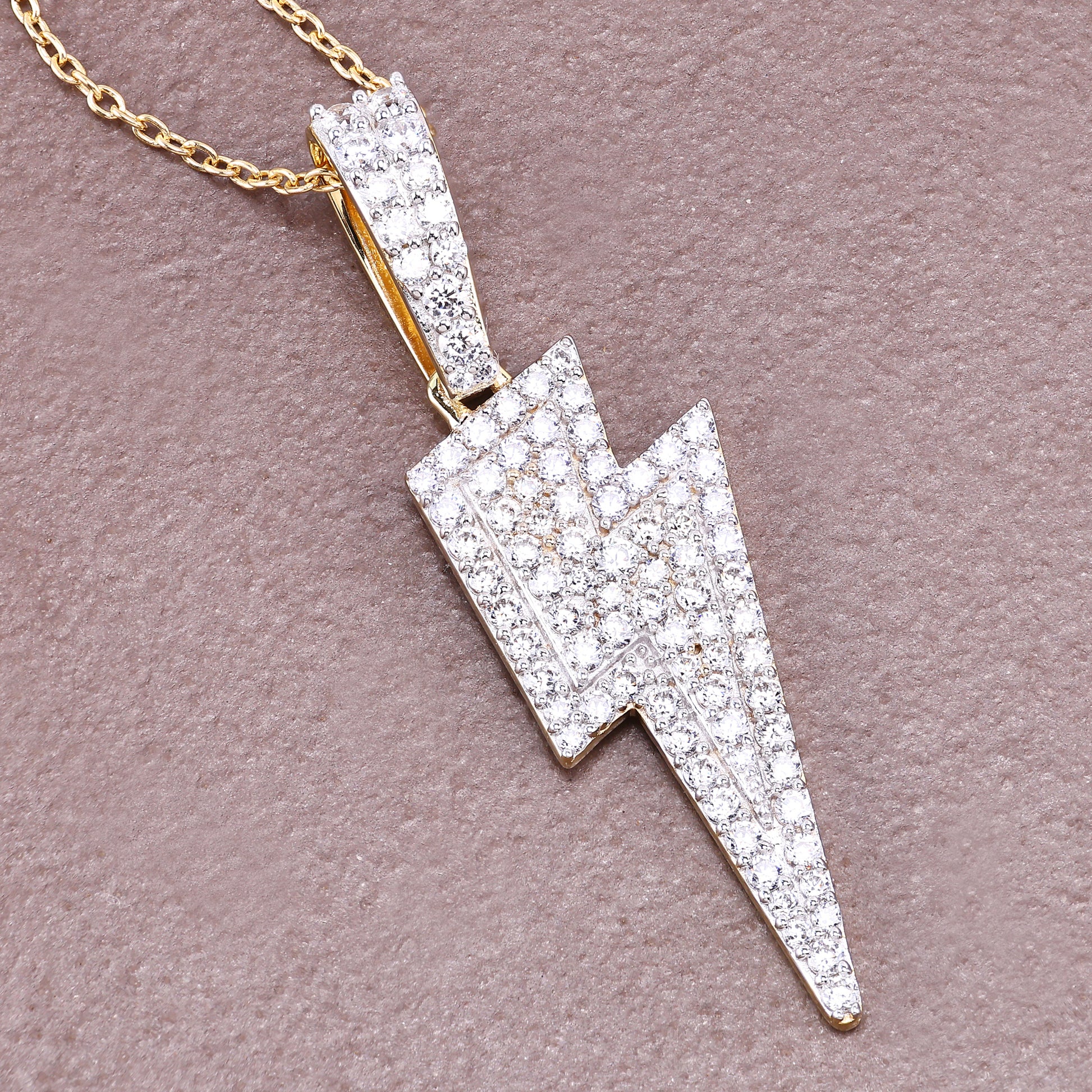 Add a spark of glamour to your look with this Flash Pendant, made from .925 sterling silver and finished with radiant yellow gold plating. The lightning bolt design, encrusted with shimmering VVS diamond simulant rounds, catches the light with every move, creating an eye-catching sparkle.