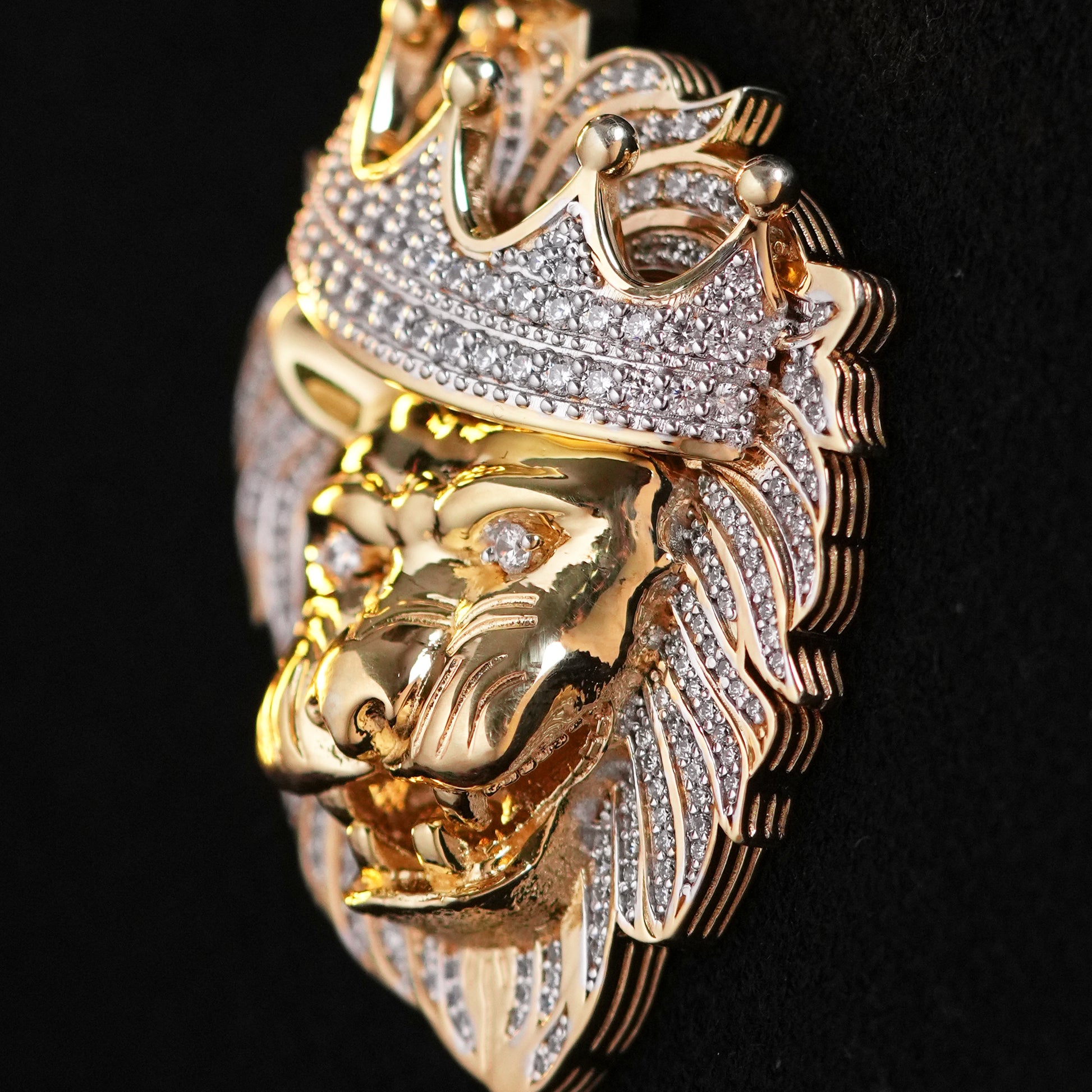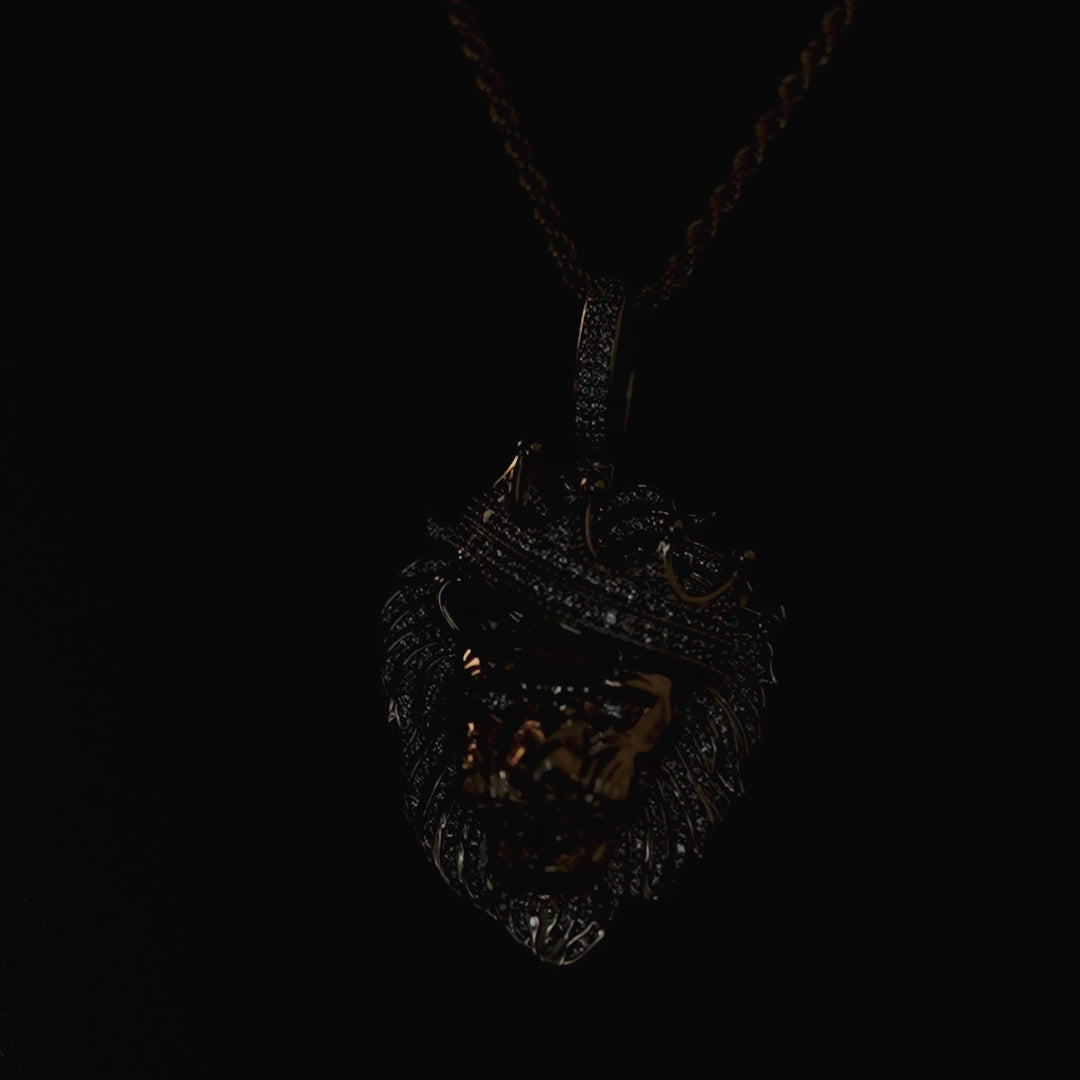The mane and crown are adorned with simulated diamonds, adding a radiant brilliance that commands attention. Designed for those who embody resilience and power, making it an essential piece for hip-hop jewelry lovers and statement-makers.