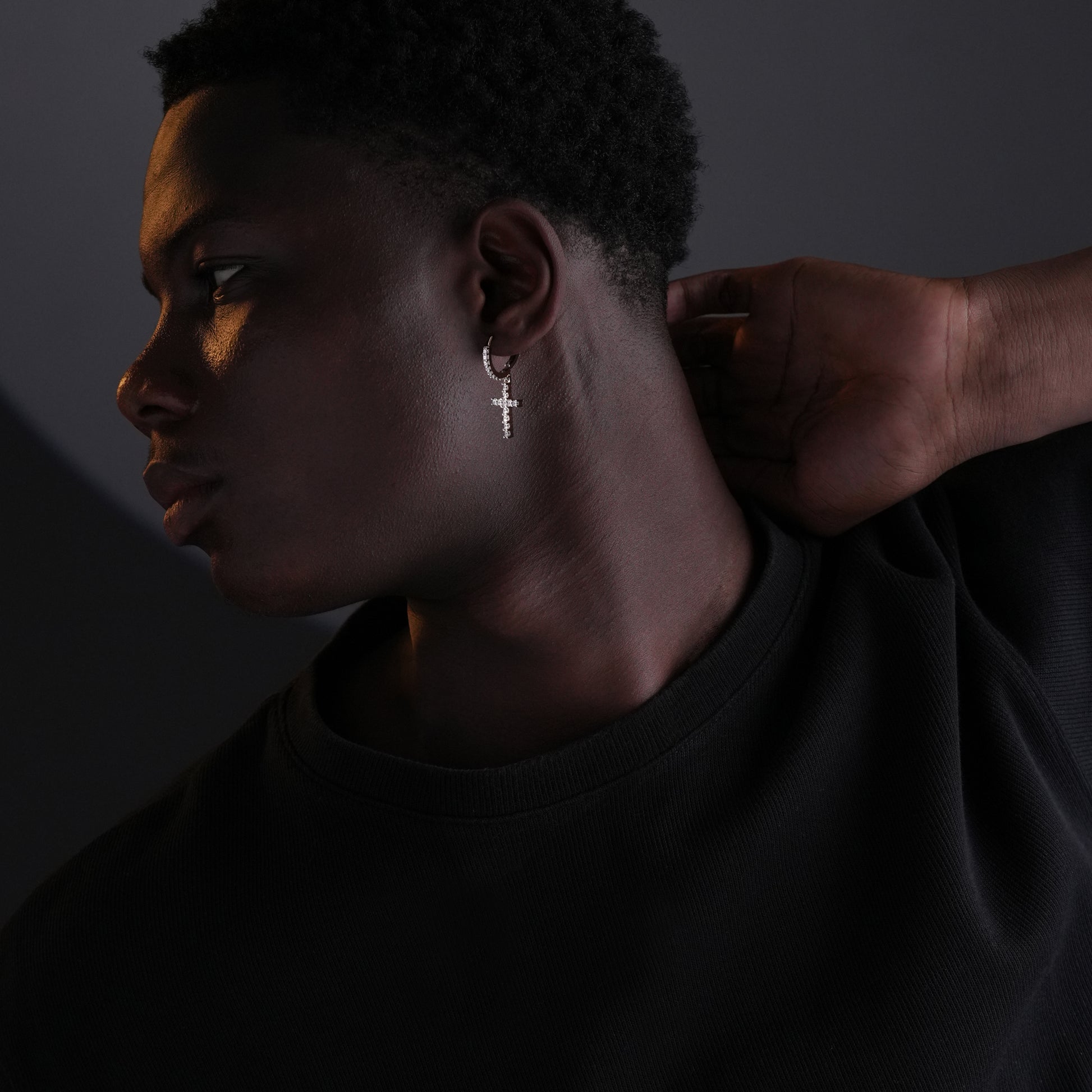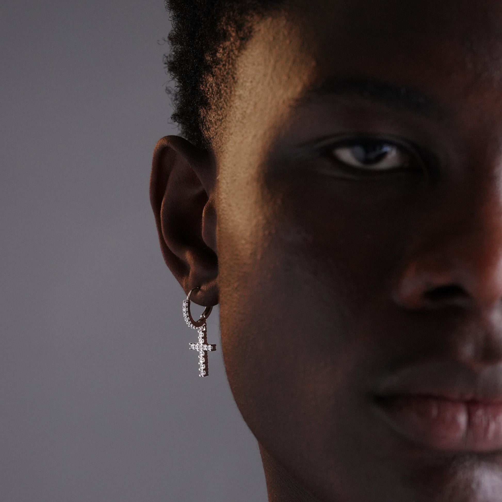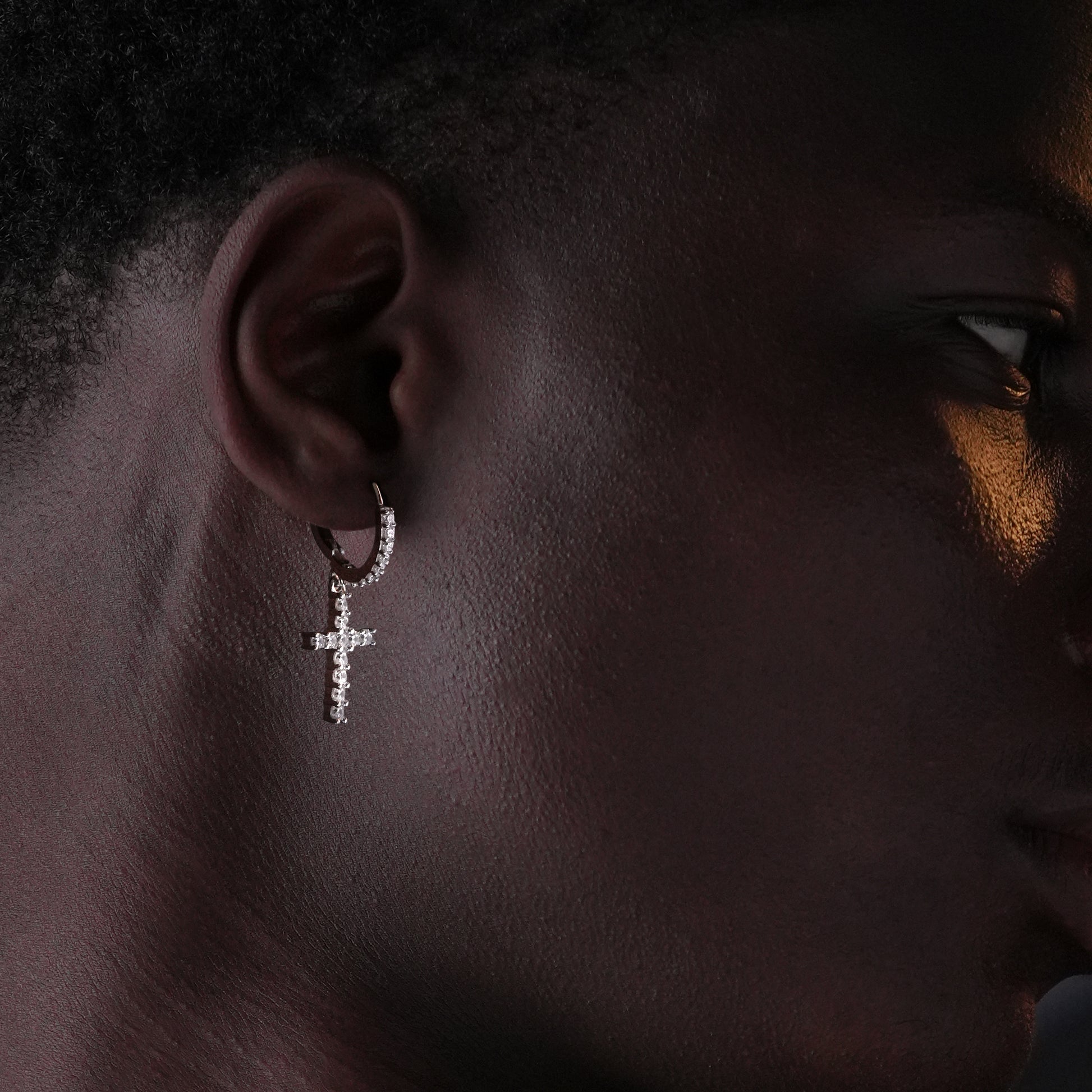 Showcase your timeless style with these beautiful Single Row Cross Earrings. Made from .925 sterling silver with platinum plating for a brilliant shine, these earrings feature a single row of simulated diamonds that sparkle with every movement. The delicate cross design hangs elegantly, making these earrings perfect for both everyday wear and special occasions.