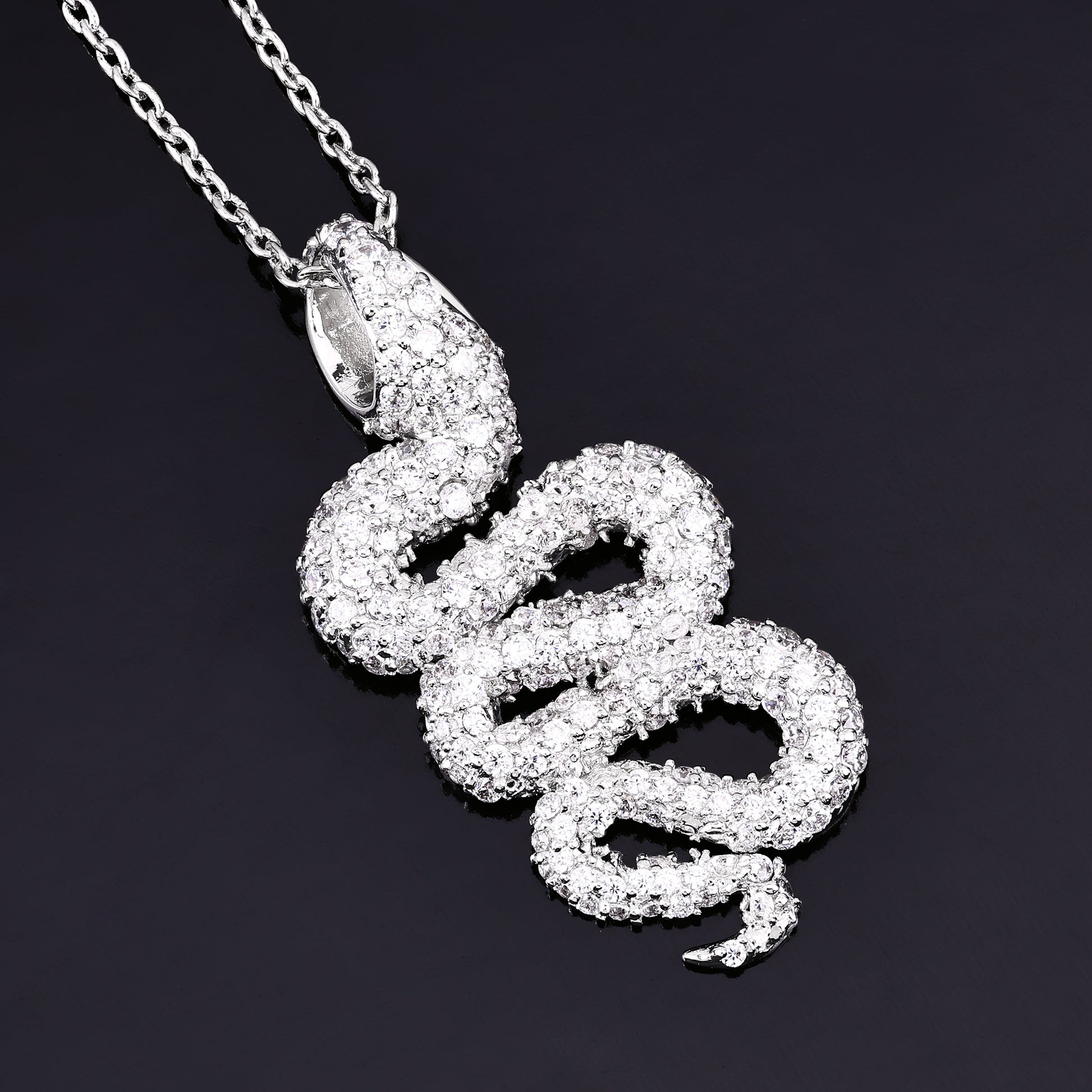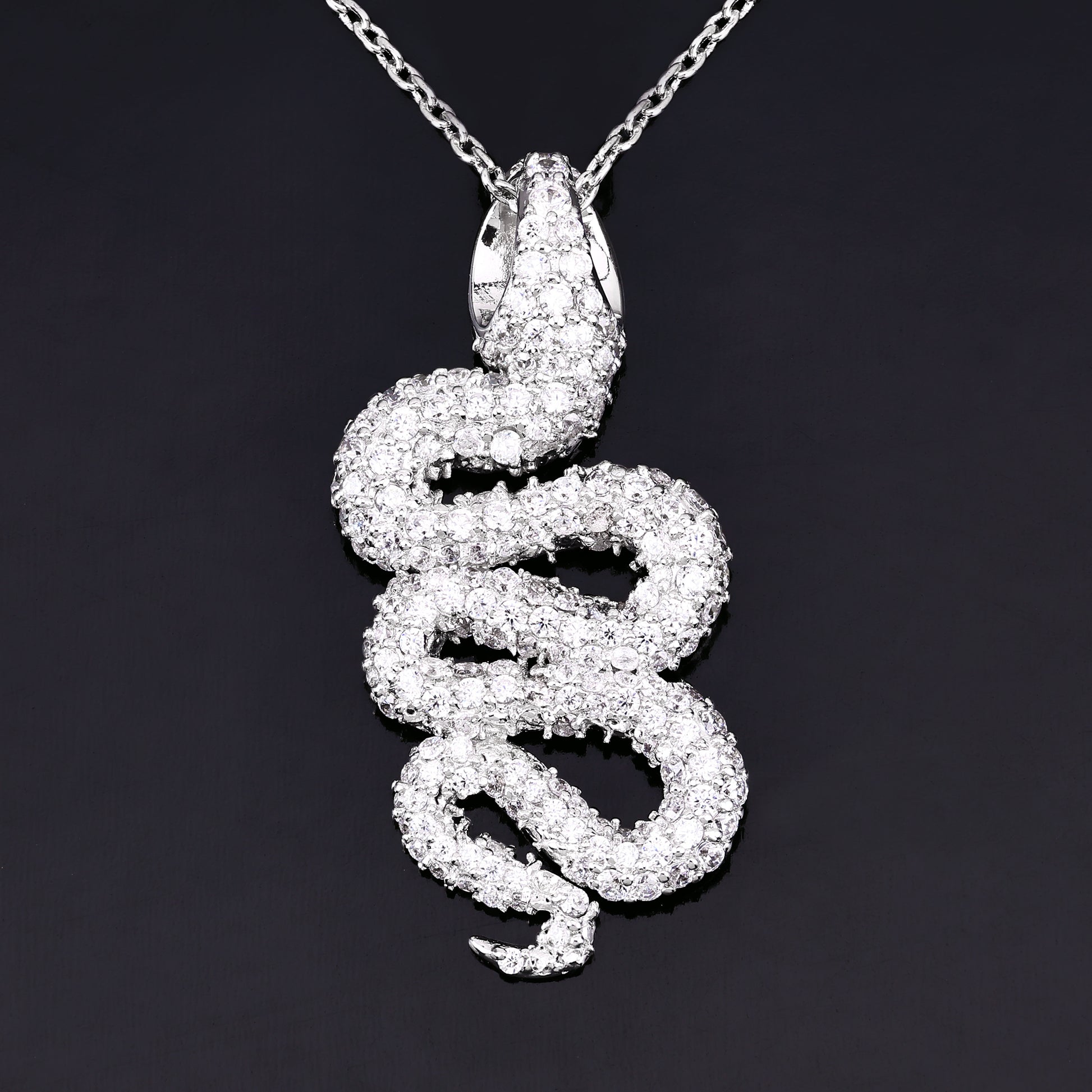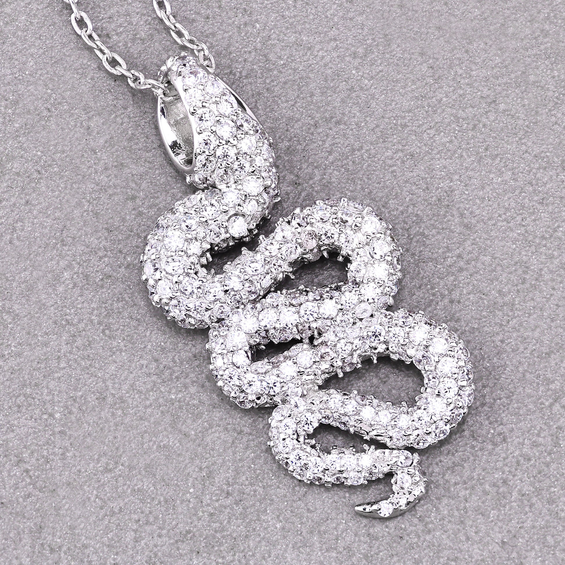 Show off your edgy, stylish side with this mesmerizing Snake Pendant. Crafted from brass and finished with high-quality rhodium plating, this pendant shines with VVS diamond simulant stones set along the snake’s elegantly coiled body. The rhodium plating not only adds a brilliant luster but also ensures durability for everyday wear.