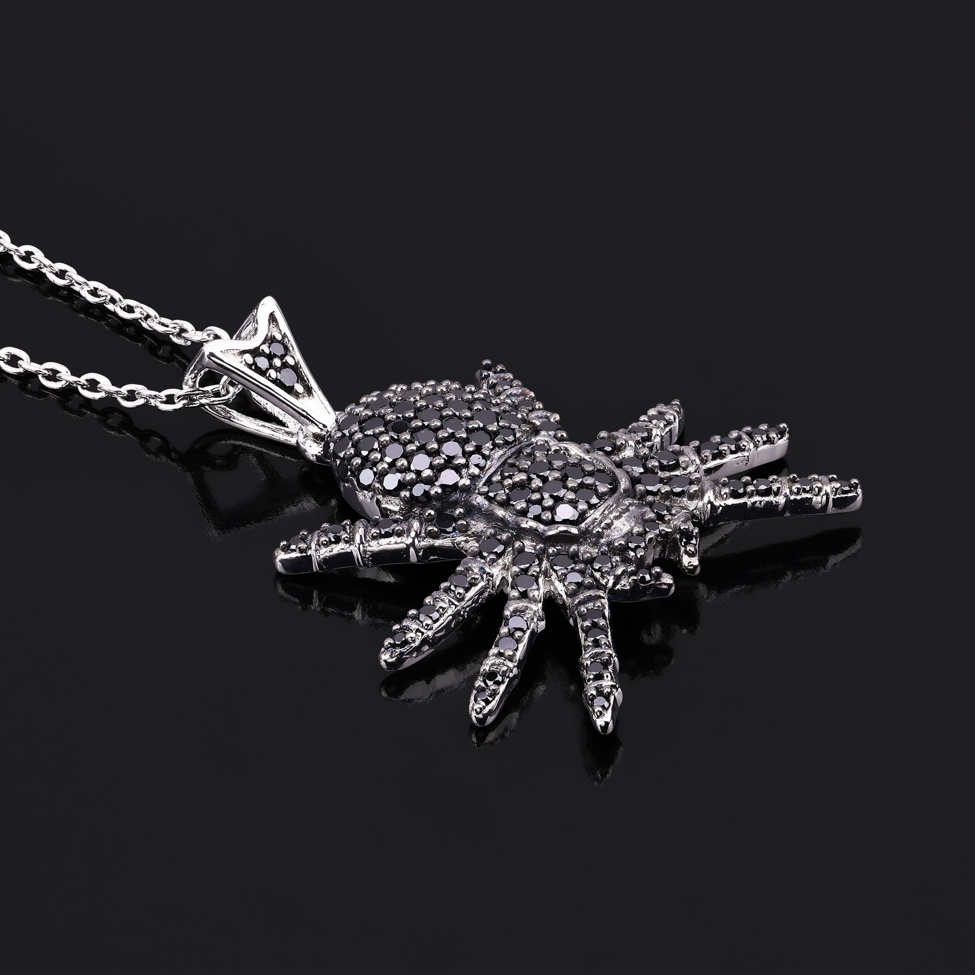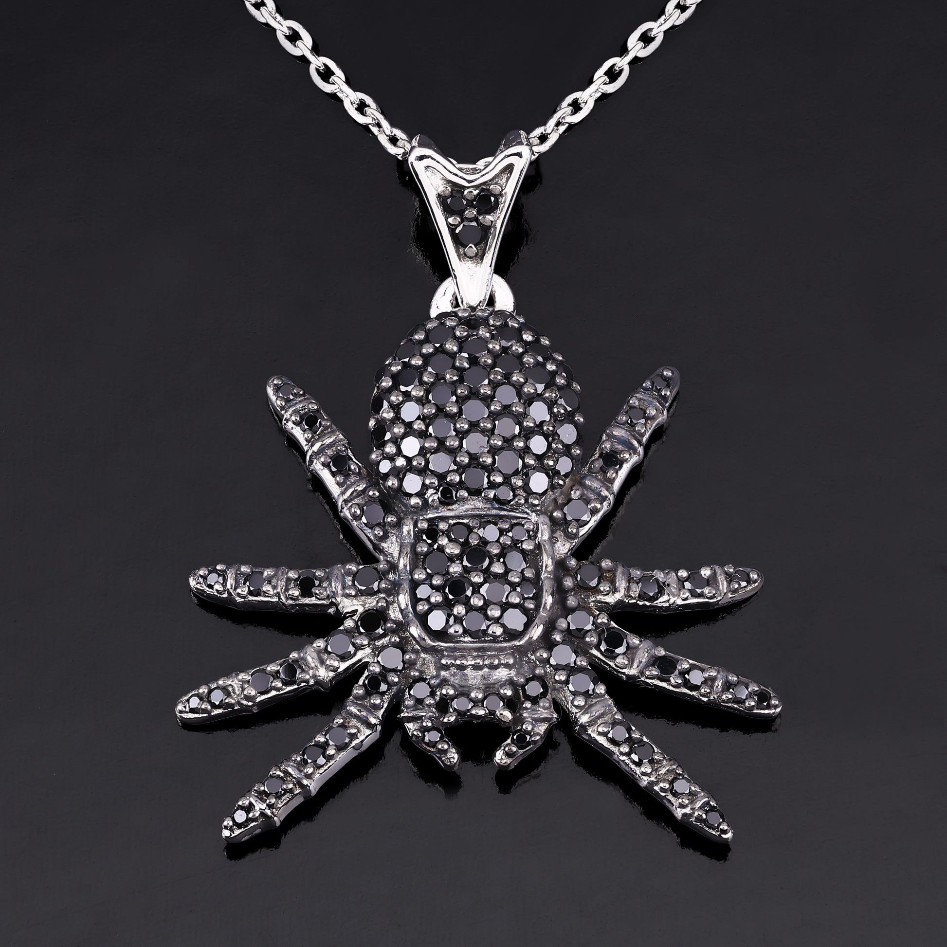 The platinum plating enhances the shine and durability, making this a lasting piece for your collection. Embrace your adventurous side with this edgy, yet stylish, spider pendant that is sure to turn heads.