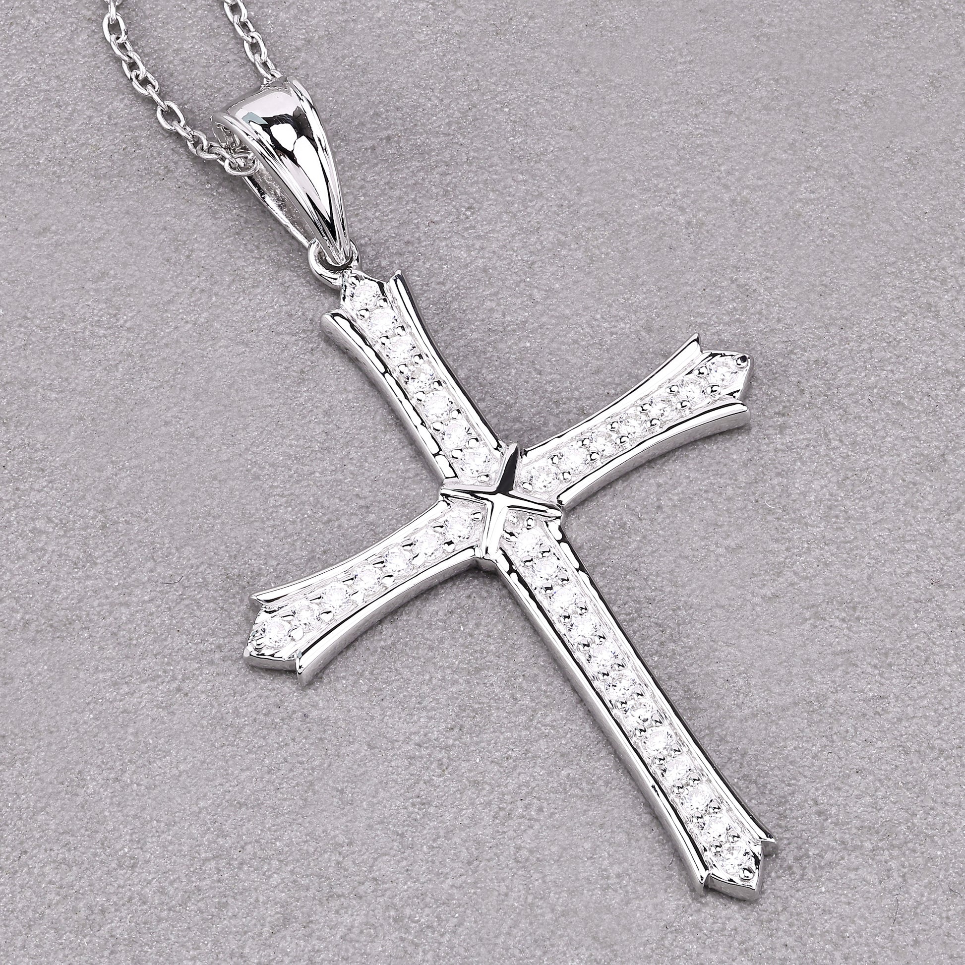 This pendant is the perfect statement piece for any occasion, whether it's a special event or a daily symbol of faith and style. With its sparkling stones and timeless design, this pendant makes a thoughtful gift or a personal treasure.