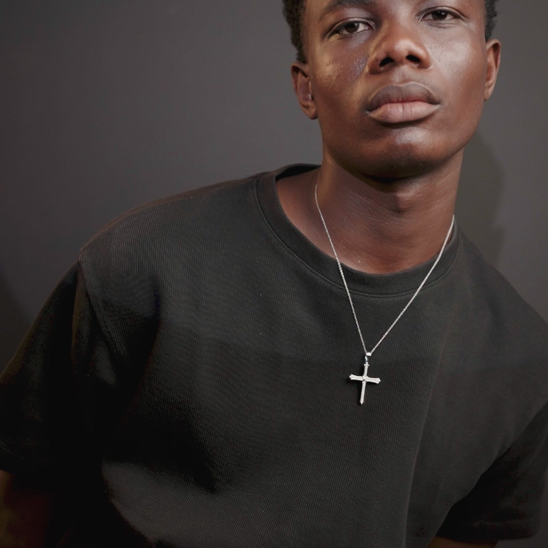 Hanging from an 18-inch chain, this pendant is the perfect statement piece for any occasion, whether it's a special event or a daily symbol of faith and style. With its sparkling stones and timeless design, this pendant makes a thoughtful gift or a personal treasure.