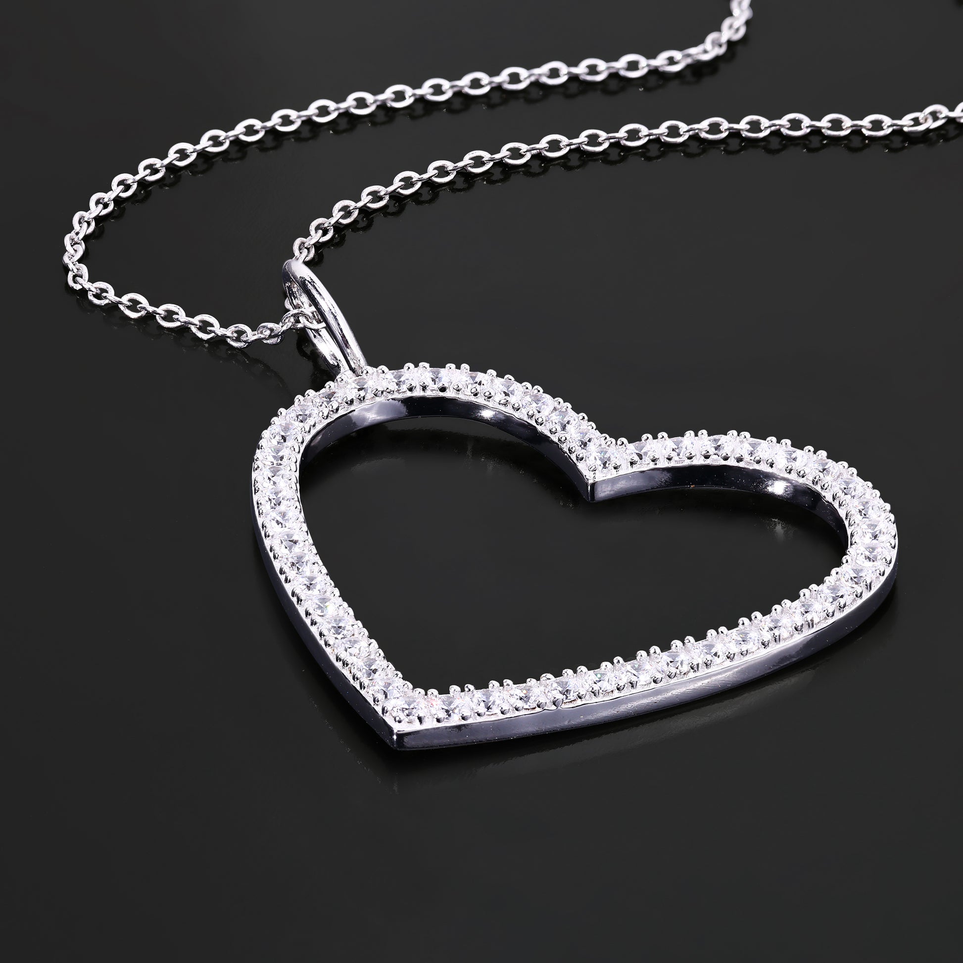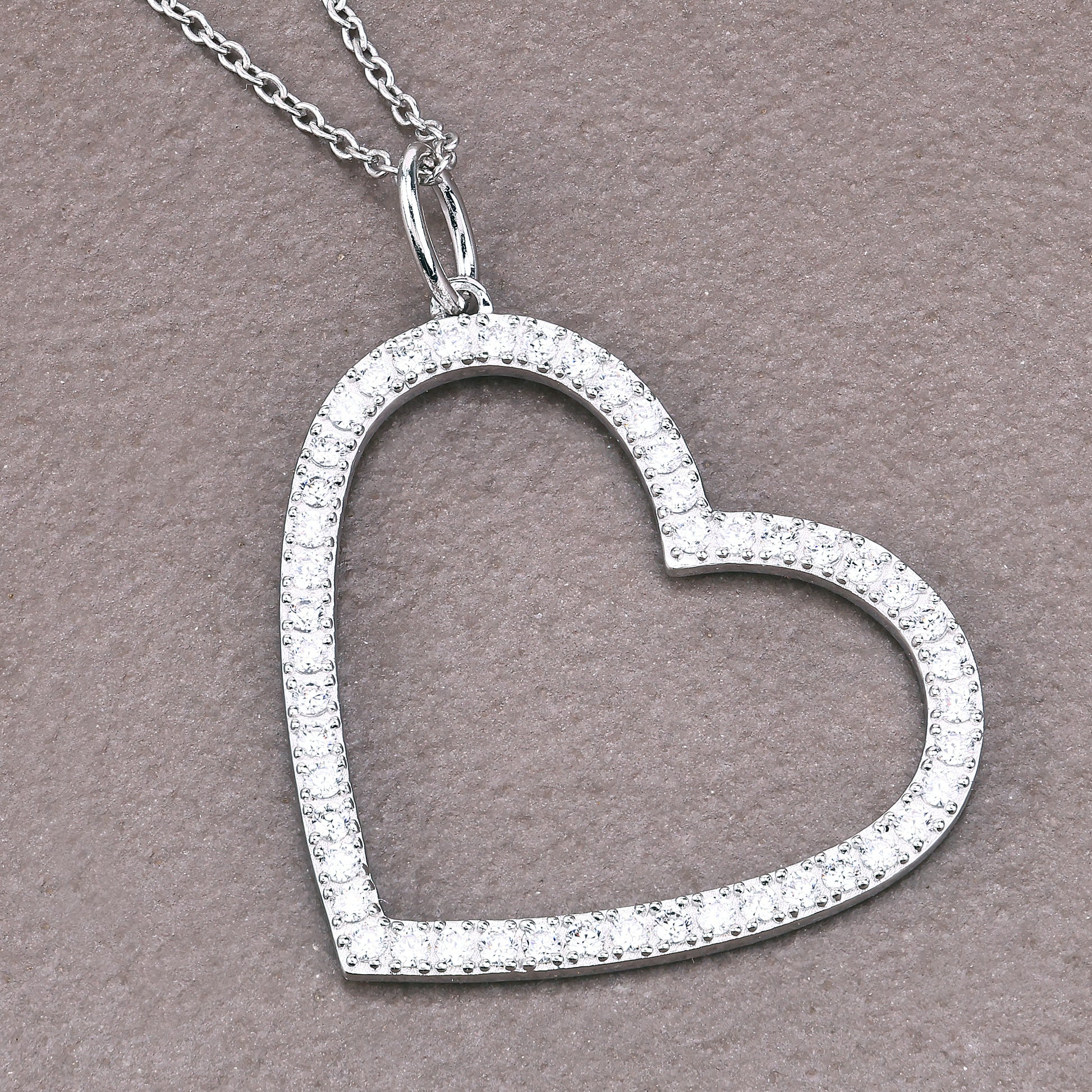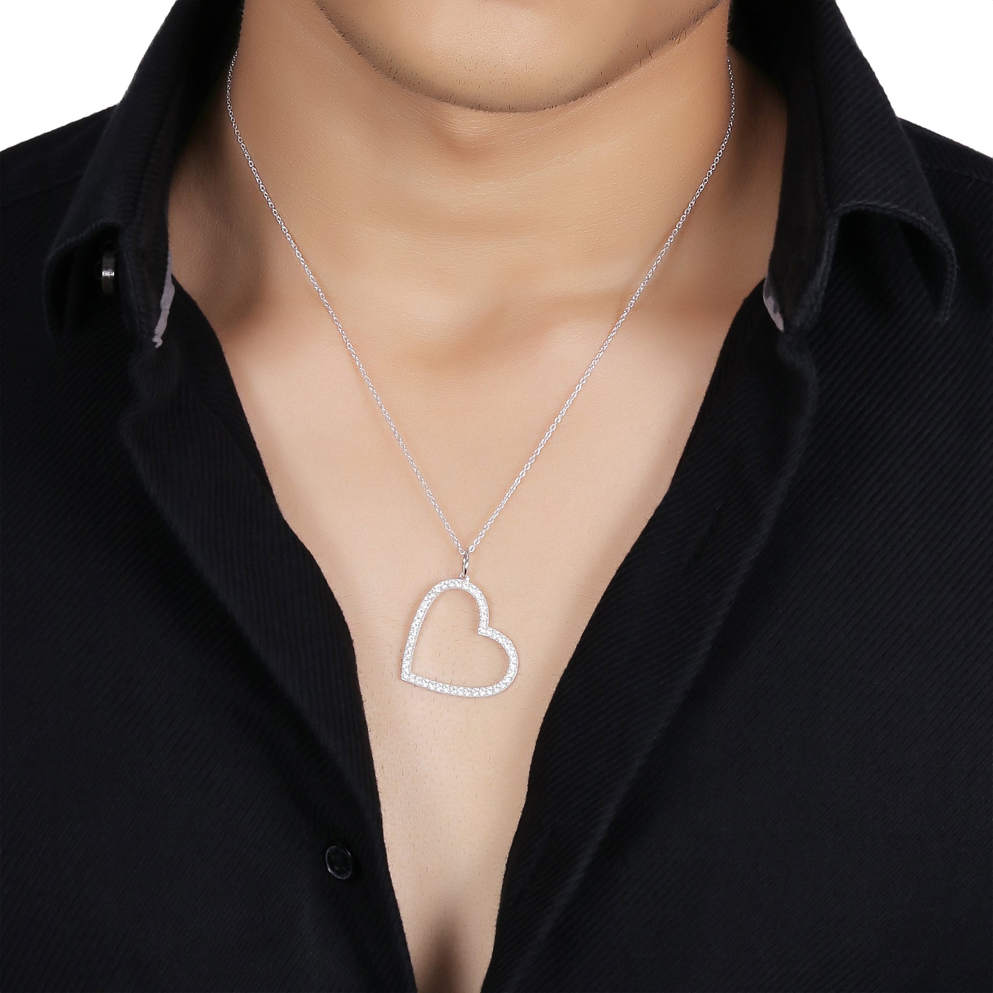 Express modern love with this Tilted Heart Pendant, beautifully crafted from brass and plated with rhodium for lasting brilliance. This eye-catching pendant features 48 VVS diamond simulant stones (1.50mm each) that sparkle along the tilted heart outline.