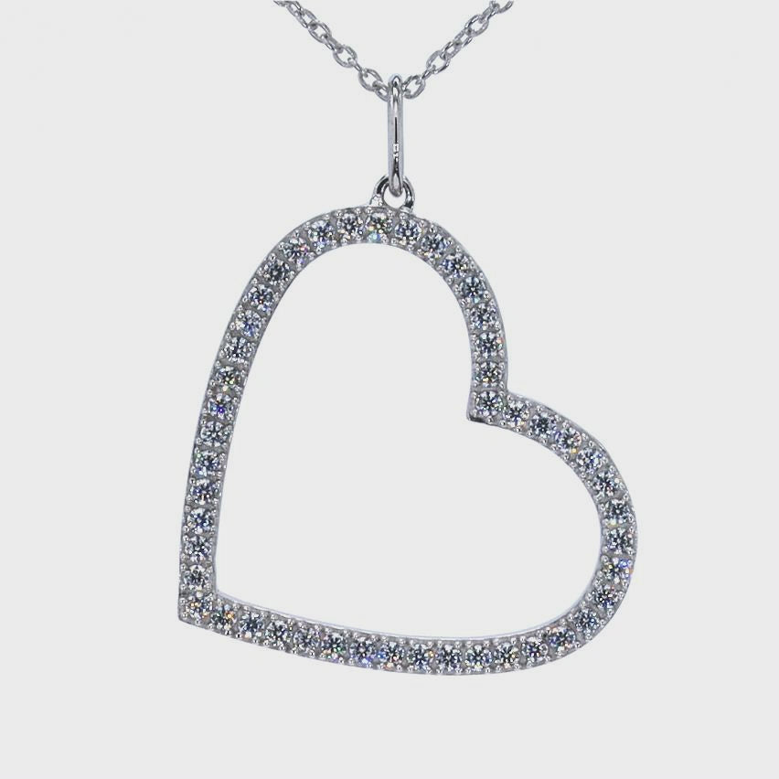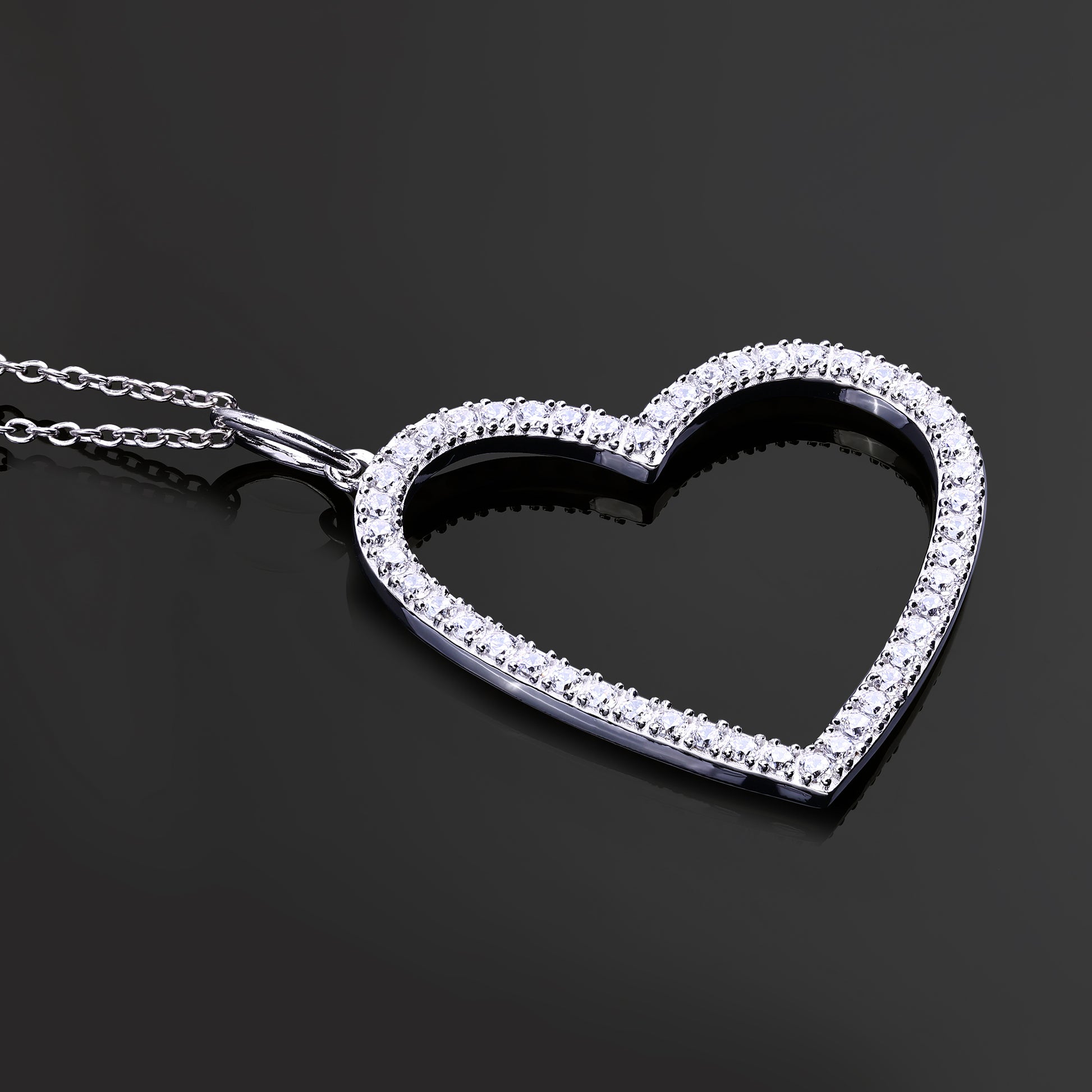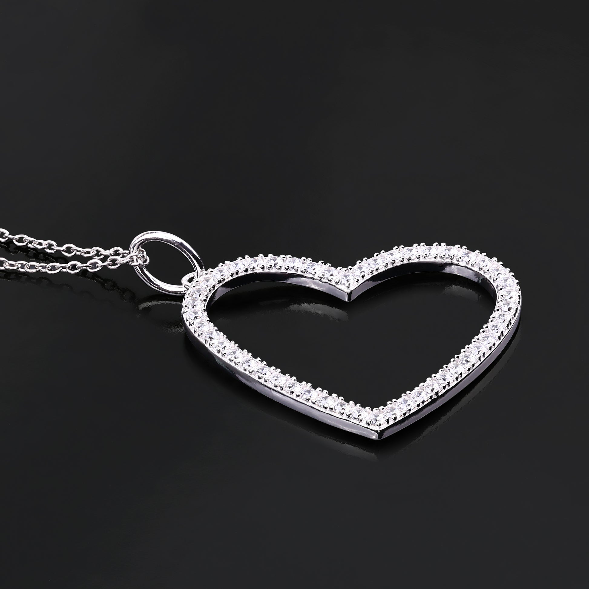 Express modern love with this Tilted Heart Pendant, beautifully crafted from brass and plated with rhodium for lasting brilliance. This eye-catching pendant features 48 VVS diamond simulant stones (1.50mm each) that sparkle along the tilted heart outline.